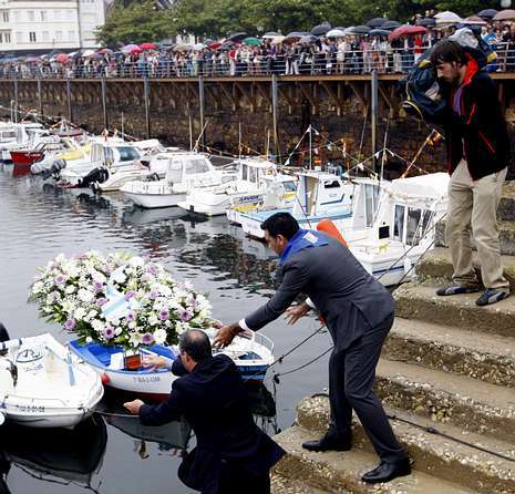 Imagen de la ofrenda a los náufragos en el puerto de Foz. P. LOSADA